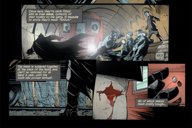 I enjoy it when Batman does something badass with simple devices, without going full-on James bond as it were, and this is a great example of the sort of ingenuity I like Batman to express (although, as one sharp Redditor pointed out to me: if these masks are welded to their heads, how exactly do they eat?).