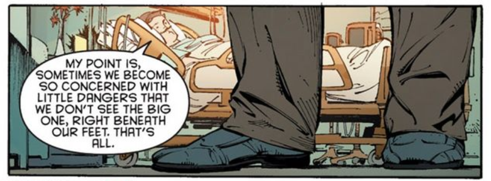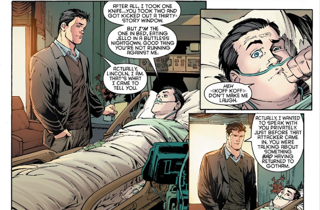 I also find myself wishing that the other shoe would drop with the Lincoln character. Maybe I’m just reading my own paranoia into this, but it seems very obvious to me that he is connected with the Court of Owls. He’s too knowledgeable and leading during his conversations with Bruce, and if it turns out he is involved, then I think it’s a big misstep on Snyder’s part making Bruce oblivious to the seemingly apparent subterfuge Lincoln is attempting to sow. It seems like blatant foreshadowing done for the sake of… why exactly, I’m not sure…
