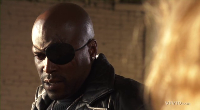 But first…the pluses: The casting and acting was average to good. All the women are hot and look good in their costumes. Brendan Miller really gets into it as Thor spouting that ‘Shakesperean like dialogue’ with gusto. And Dale DaBone is a passable copy of Robert Downey Jr.’s wisecracking Iron Man. The costumes are actually very well done, especially Iron Man’s…and as previously mentioned…the open ‘breast flaps’ and ‘crotch flaps’ on the women’s costumes is an ingenious way to allow the actresses to be naked enough to fuck, while still allowing them to maintain the ‘skin tight sexy super hero costume visual’ of their characters. Brooklyn Lee is especially hot as Black Widow in her tight black catsuit gobbling the dick of Eric Masterson as Hawkeye. Lexington Steele as Nick Fury briefly appears to lose his erection…but still has a nice scene with his sexy blond Shield assistant.